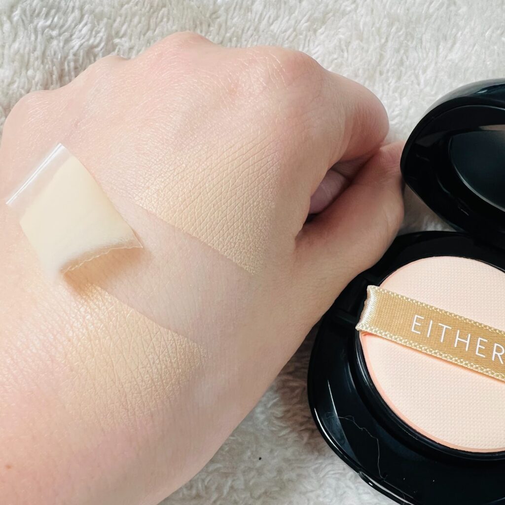 結論、EITHERE&(イーザーアンド)ペブルブラークッションは、さりげないツヤ感がありつつも、厚塗り感やテカりも出にくくて、混合肌との相性がよかったです。